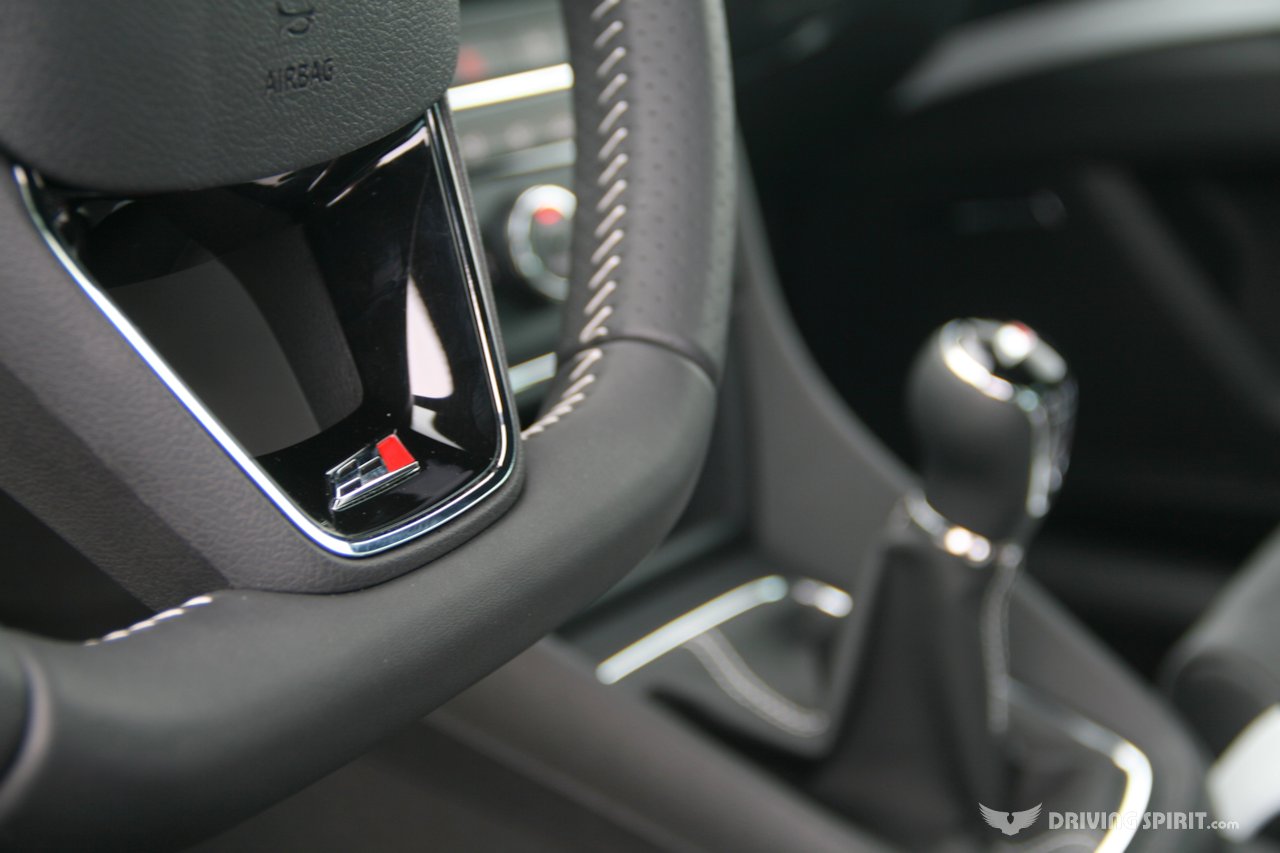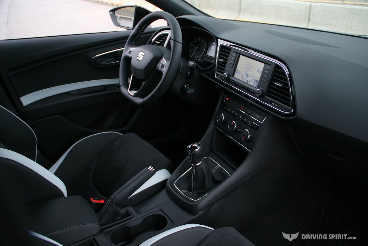 Cupra logos appear on the flat-bottomed steering wheel, door sills, centre console and speedo while red LED lighting in the door and roof add a bit of night-time colour.